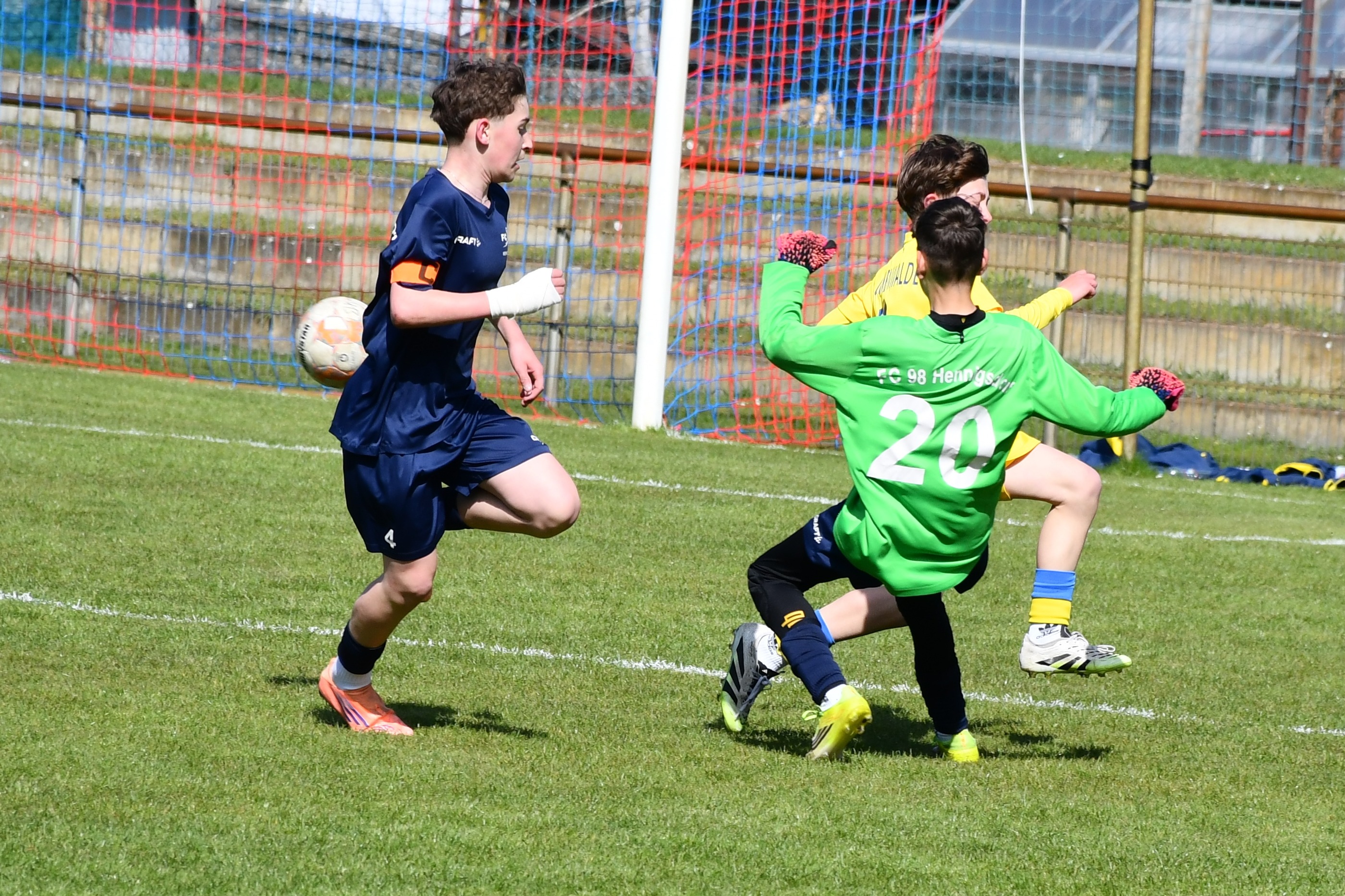 Gespielt wurde erneut parallel auf zwei Plätzen mit jeweils zwei Teams. Das Team 1 des FC 98 erwischte dabei einen Traumstart und dominierte das erste Viertel klar mit 5:0. Team 2 hingegen musste sich zum Auftakt mit 0:3 geschlagen geben, sodass das Trainerteam die Mannschaft in der Pause besser auf den Gegner einstellen musste. Im zweiten Viertel blieb Team 1 weiter auf Kurs und gewann erneut souverän mit 6:0, während sich Team 2 deutlich steigerte und diesmal einen 2:0-Erfolg feiern konnte.