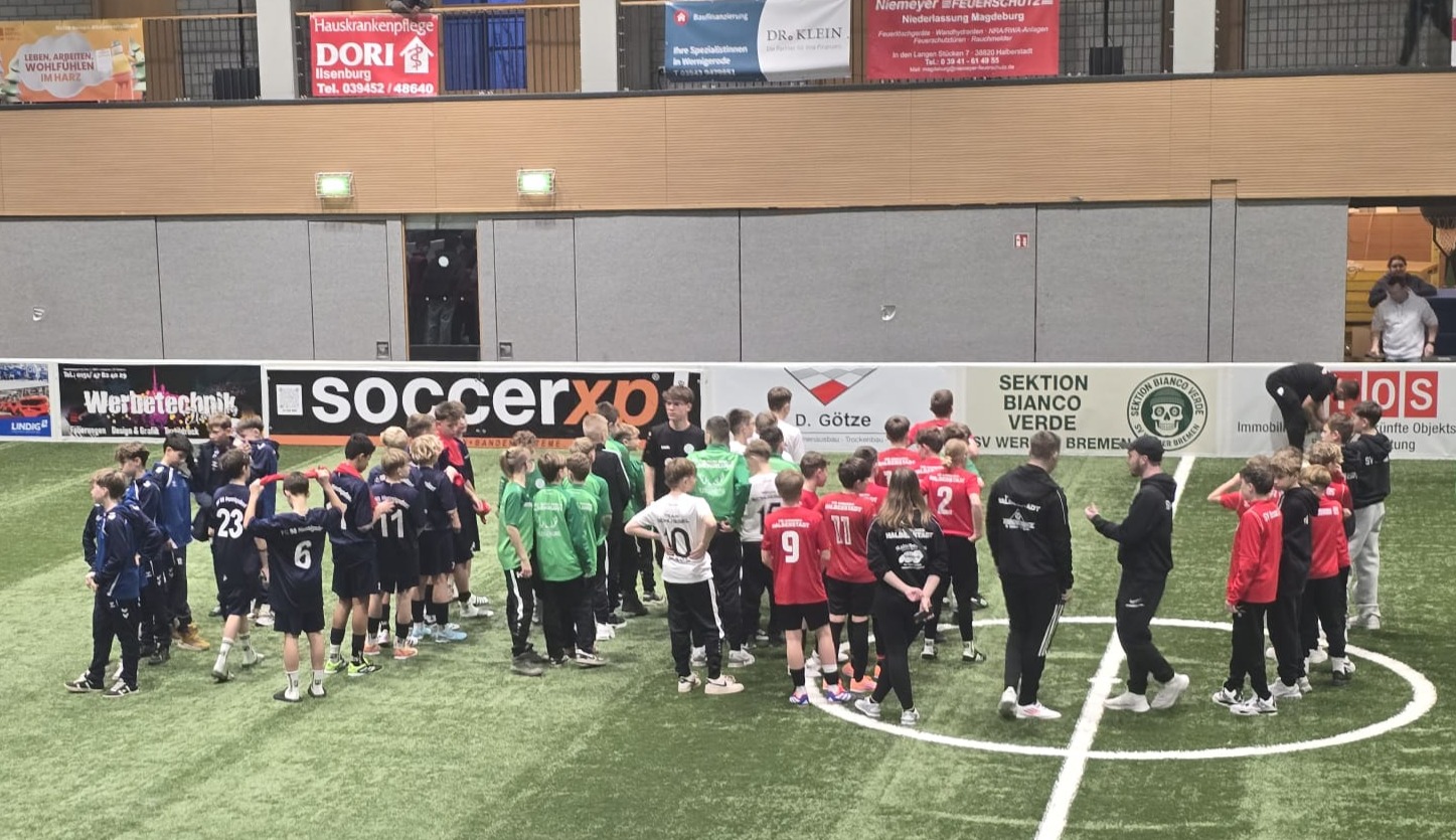 In Ilsenburg zeigten unsere Jungs von der ersten Minute an, dass sie etwas vorhatten. Hochkonzentriert, mutig und mit enormer Intensität starteten sie ins Turnier. Gegen keinen Geringeren als den 1. FC Magdeburg übernahmen sie sofort das Kommando und spielten sich schnell eine beeindruckende 3:0-Führung heraus. Die Landeshauptstädter mussten diesen Schock erst einmal verdauen, kämpften sich mit ihrer individuellen Klasse zwar noch auf 5:3 heran – doch der starke Auftakt unserer Mannschaft setzte ein klares Zeichen. Mit viel Selbstvertrauen gewannen unsere Jungs auch alle weiteren Vorrundenspiele und zogen verdient in die K.-o.-Phase ein.