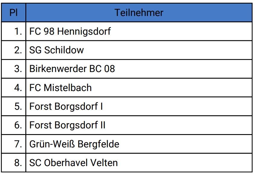 Die Vorrunde klang auf dem Papier angenehm: SG Schildow, Gastgeber Forst Borgsdorf und SC Oberhavel Velten. Doch Papier ist bekanntlich geduldig – unsere Jungs offenbar auch. Gleich im ersten Spiel gegen Schildow wurde wieder einmal bewiesen, dass Theorie und Praxis zwei völlig verschiedene Sportarten sind. Nach einem frühen, völlig unnötigen Rückstand rettete man sich zu einem schmeichelhaften 1:1. Fehlende Bewegung, harmlose Abschlüsse und die große Frage: Warum eigentlich? – unbeantwortet bis heute.