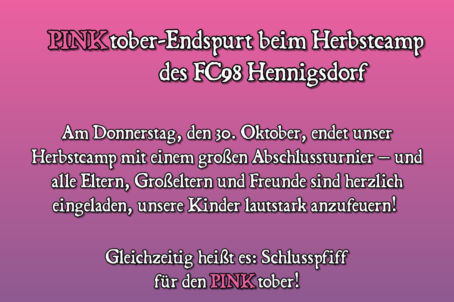 Beim aktuell laufenden HBK-Herbst-Camp 2025 findet unser PINKtober seinen Abschluss.