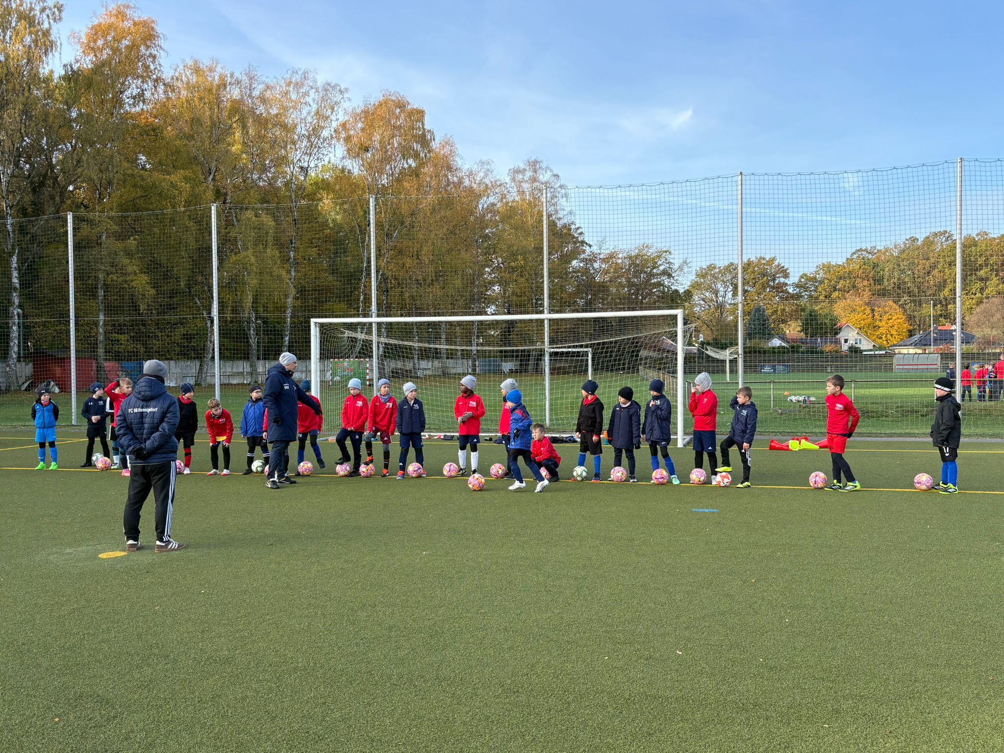 Mit 5 Trainern und 43 Kindern im Alter von 6 bis 13 Jahren startete heute das diesjährige Herbstferien-Camp – bei bestem Fritz-Walter-Wetter.