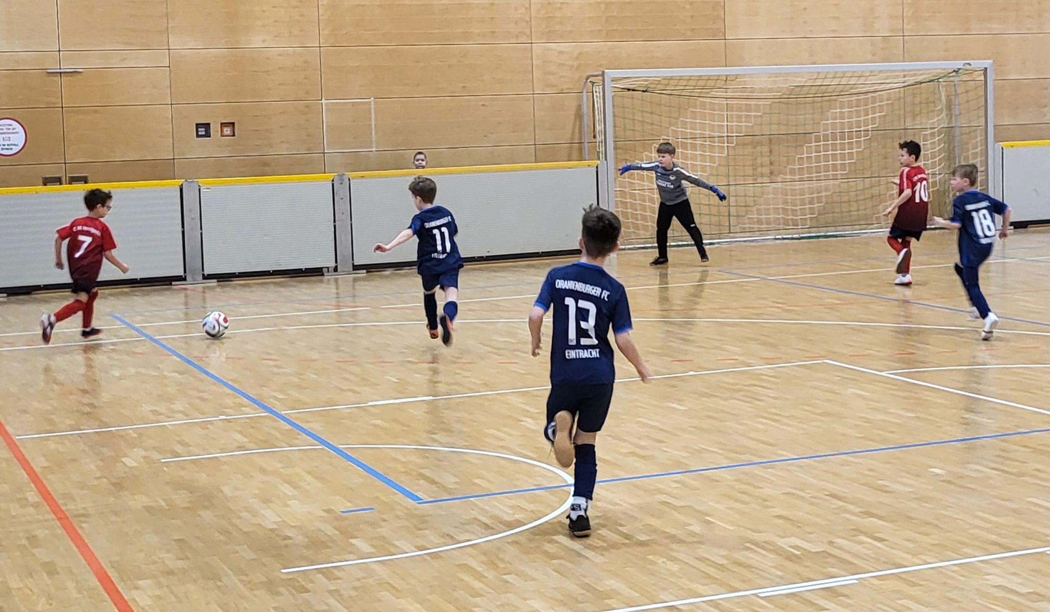 Am Vormittag reisten unsere Gäste aus Velten, Glienicke, Borgsdorf, Hohen Neuendorf und Oranienburg an. Von Beginn an herrschte eine tolle, faire Atmosphäre in der Halle. Die Zuschauer sahen begeisternden Kinderfußball mit schönen Spielzügen, großem Einsatz und echtem Teamgeist. Unsere U9 brauchte im ersten Spiel gegen Velten noch etwas Anlaufzeit und kam nicht über ein 0:0 hinaus. Doch danach war der Knoten geplatzt: Mit Leidenschaft, Spielfreude und beeindruckender Konsequenz folgten Siege gegen Glienicke (4:1), Hohen Neuendorf (2:0), Borgsdorf (6:0) und Oranienburg (8:0). Am Ende stand ein hochverdienter Turniersieg – mit nur einem einzigen Gegentor! Gekrönt wurde diese starke Leistung durch individuelle Auszeichnungen: Fiete wurde als bester Torhüter und Mika mit 5 Treffern als bester Torschütze ins Allstar-Team gewählt.