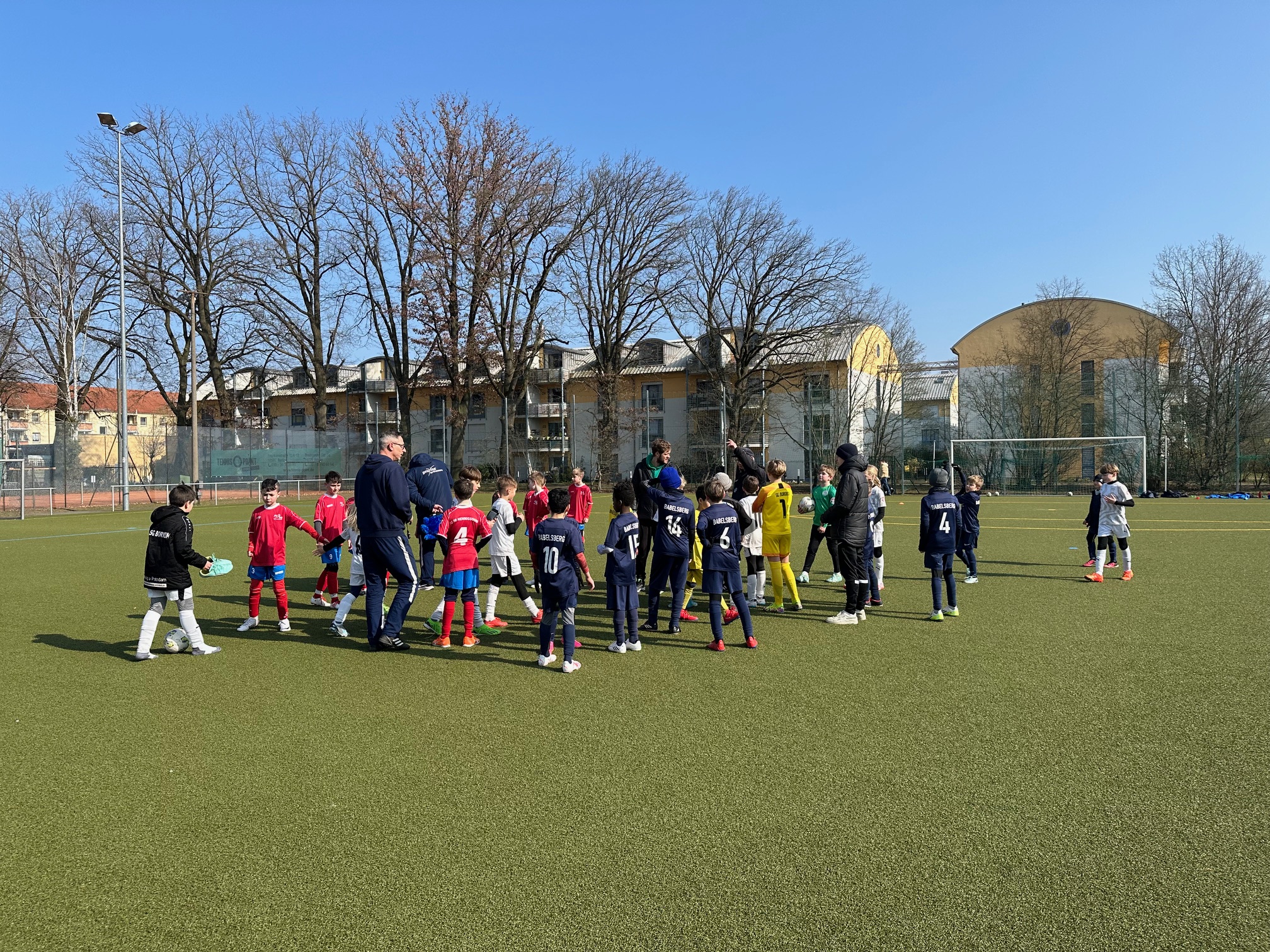 Bei strahlendem Sonnenschein fanden sich an diesem Samstag im FFG-Sportpark die jungen Wilden unserer U 11, die SG Bornim und die U 10 von Babelsberg 03 zu einem Miniturnier zusammen. Erwartungsgemäß trafen hier drei Teams auf Augenhöhe aufeinander, was eine Vorabprognose zu den Spielen nahezu unmöglich machte. Enge Spiele, für Zuschauer und Trainer fein anzusehen, waren die Folge. Einige Schmankerl konnten bewundert werden und für die Fußballlehrer wurde sicherlich auch die ein- und andere Stellschraube entdeckt, an der in der kommenden Trainingswoche geschraubt werden kann. Gespielt wurde im Modus "Jeder gegen Jeden" mit Hin- und Rückspiel und über jeweils 20 Minuten. Am Ende hatten unsere Kids einen Sieg, zwei Remis und eine Niederlage auf dem Wettkampfkonto zu verzeichnen...toller Sport :-)