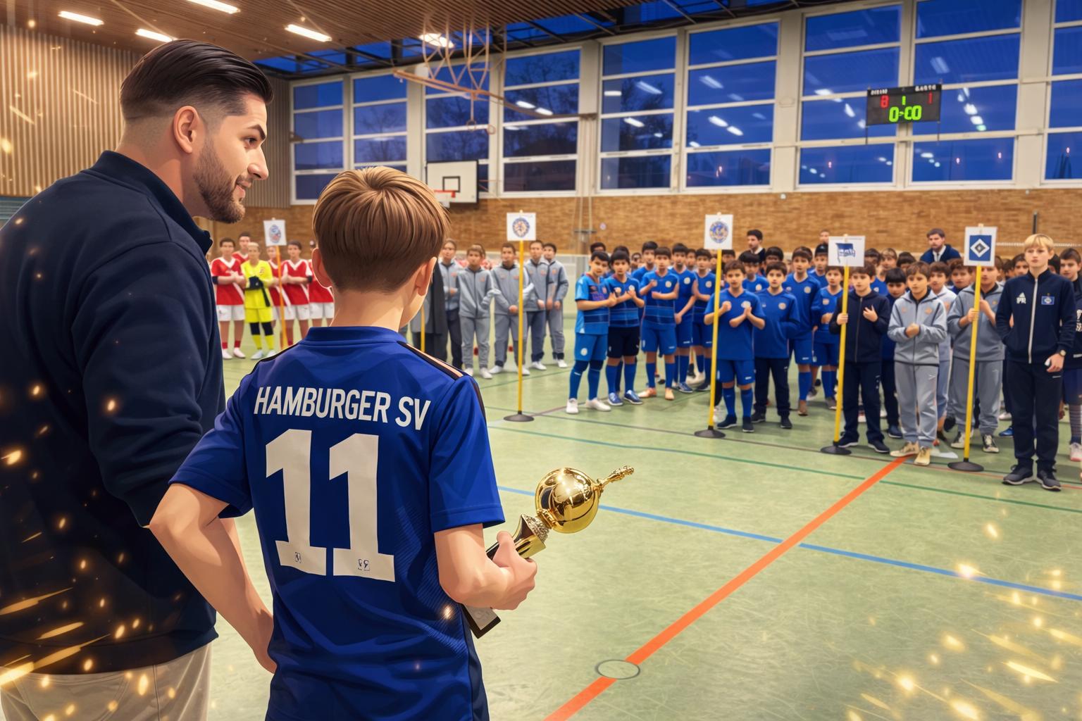 Im Viertelfinale wartete mit RB Leipzig ein spielstarker Gegner. Wir unterlagen knapp mit 0:1. Unsere Jungs kämpften leidenschaftlich und hätten sich ein Elfmeterschießen absolut verdient – leider blieb uns dieses verwehrt. Im anschließenden kleinen Halbfinale trafen wir auf Hertha BSC. Auch hier präsentierte sich unsere Mannschaft mutig, musste sich aber erneut knapp mit 1:2 geschlagen geben. Zum Abschluss ging es im letzten Spiel noch einmal gegen unsere Freunde vom Hamburger SV. Wir gingen sogar mit 1:0 in Führung, doch die Gäste drehten die Partie und gewannen am Ende mit 1:3. Trotz der Platzierung waren die Trainer mehr als stolz auf ihre Kicker. Die Jungs sind an ihre Grenzen gegangen, haben enorm viel gelernt und wertvolle Erfahrungen gesammelt. Gegen solche Mannschaften auf diesem Niveau spielen zu dürfen, ist alles andere als selbstverständlich – und genau darauf können alle Beteiligten stolz sein.