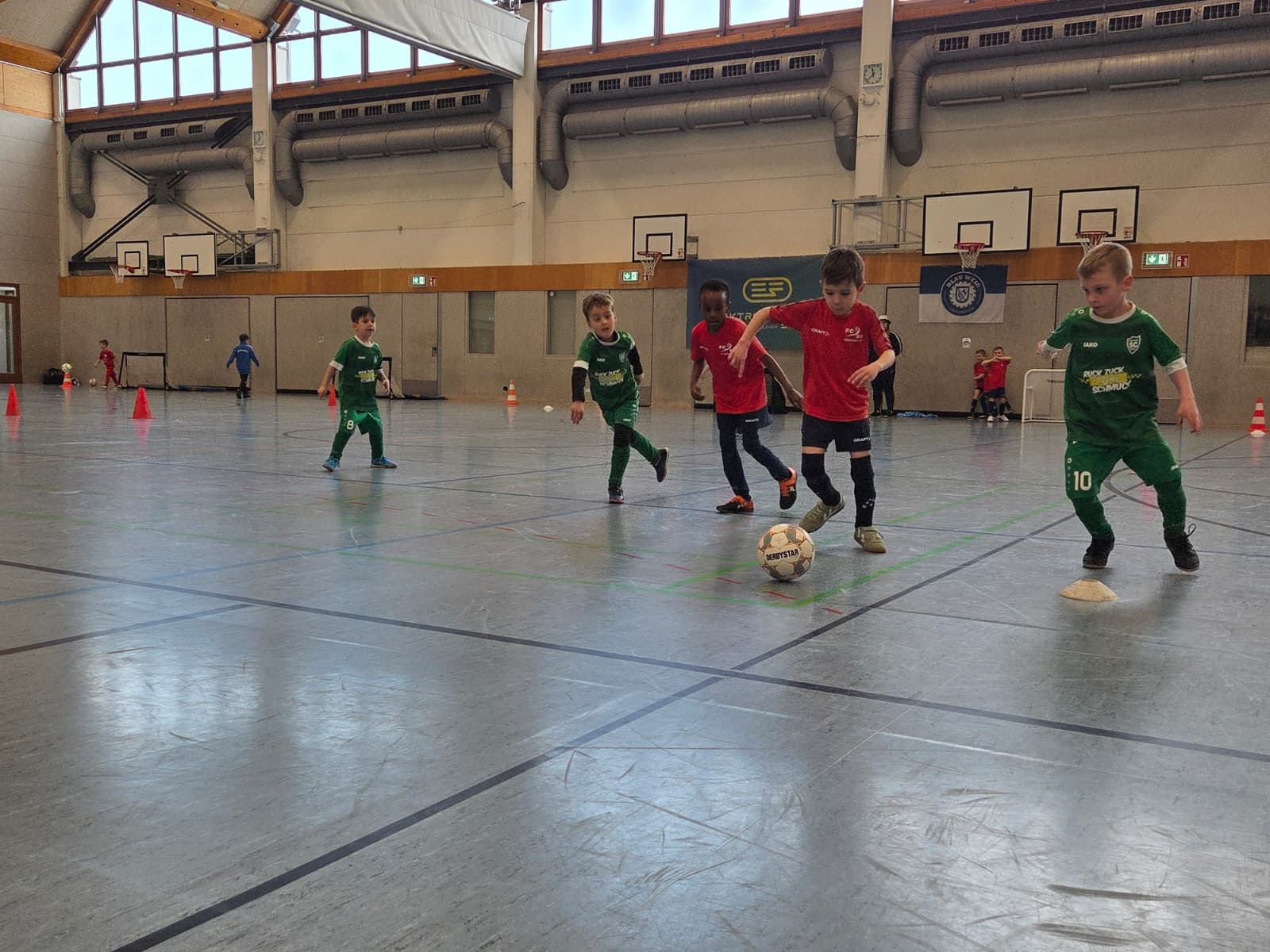 Es wurde klasse zusammengespielt und kommuniziert, zudem wurden viele schöne Tore erzielt. Auf dem Platz war oft erkennbar, dass wir kein ,,Ballknäuel" bildeten, sondern die Jungs in den im Training geübten Zonen spielten und diese mit Absprache untereinander wechselten. Alle sechs Jungs haben eine großartige Leistung gezeigt. Das war klasse, Jona, Luis, Jaden, Paul, Moritz und Jannis!