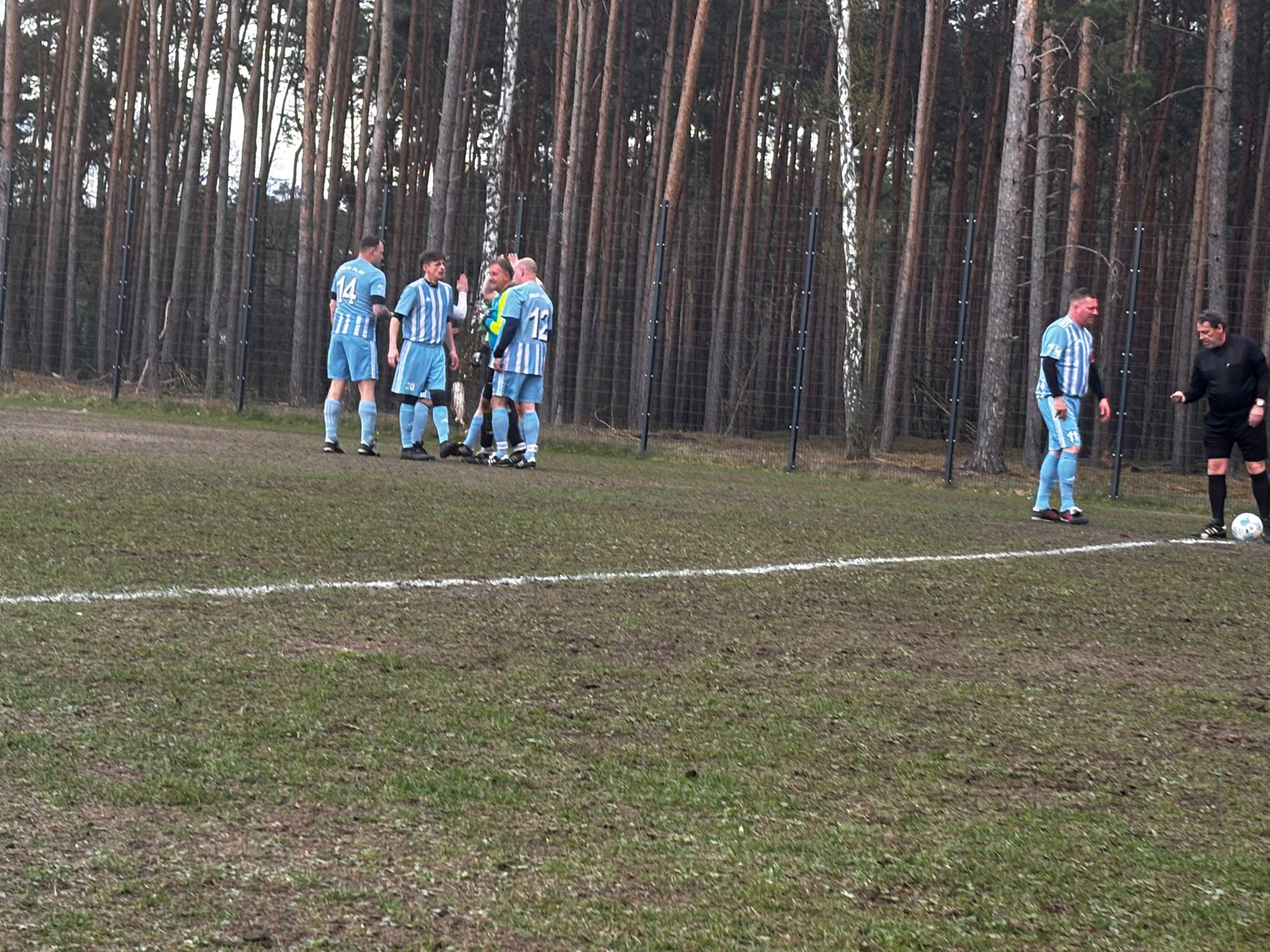 So konnte die Truppe um Spieltagskapitän Heini beim Warmmachen bereits erleben, dass fehlender Rasen, vielzählige Huckel und derbe Matschzonen „richtigen“ Fußball erschweren sollten. Doch auch die Hausherren mussten mit diesen Bedingungen leben und so nahmen alle die Herausforderung an.