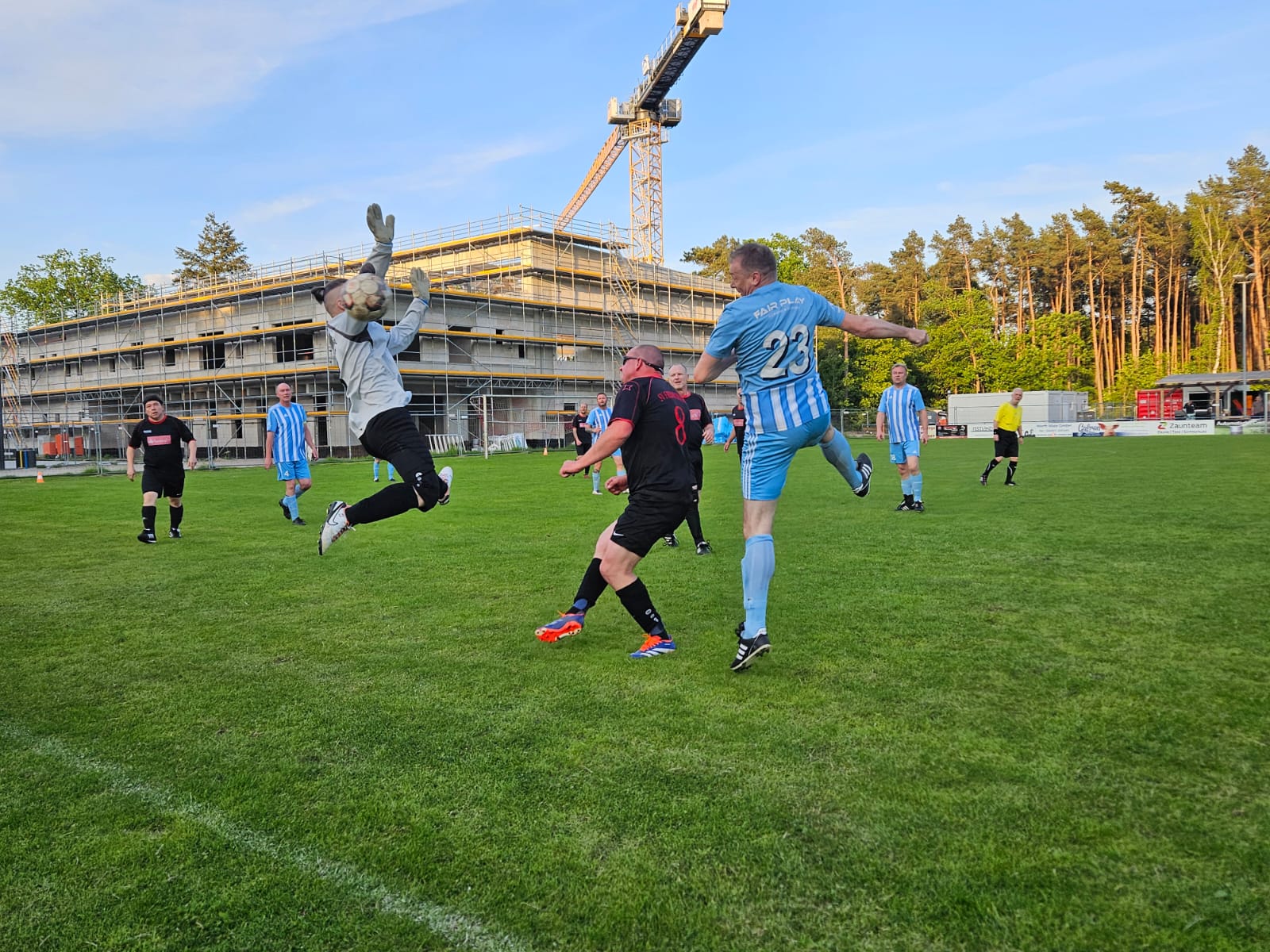 Nach der Pausenansprache durch Coach Klossi wollte man die Defizite abstellen, schnell den Anschlusstreffer erzielen und die spielerische Oberhand gewinnen. Aber: Pustekuchen! Friedrichsthal war direkt wacher und nutzte die Lücken im Hennigsdorfer Defensivspiel zum 3:0 – unmittelbar nachdem der sonst gute Schiedsrichter Klossi in einem Pass behinderte. Auch Hotte hatte diesem Angriff nichts entgegenzusetzen (31. Minute). Danach erhöhten die Gäste zwar den Druck, trafen zweimal das Aluminium, blieben aber ansonsten ungefährlich. Bis zur 46. Minute: Dort netzte Osl in seiner letzten Partie für die 40er ein, nachdem Friedrichsthal den Ball nicht klären konnte. Die weiter schwindenden Kräfte auf FC98-Seite öffneten bereits zwei Minuten später neue Räume für einen weiteren Konter, den Friedrichsthal zum 4:1-Endstand nutzte.