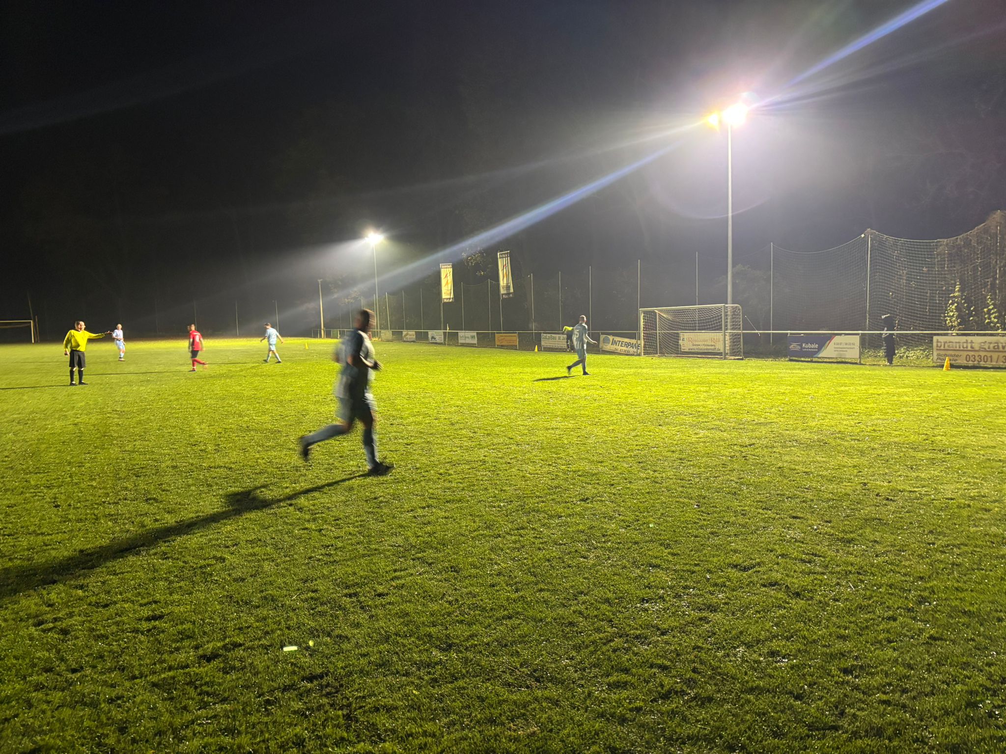 Mit guter Spiellaune und Feuer starteten beide Truppen in die Partie und es entwickelten sich sofort Möglichkeiten, wobei Keeper Hotte auf Seiten der Hennigsdorfer in der Anfangsphase sogar auf „der Linie“ retten musste. In der 15. Minute war aber auch er machtlos, als der Gastgeber nicht unverdient das 1:0 erzielte. Unbeeindruckt davon reagierte Hennigsdorf quasi im Gegenzug und Schlitzohr Yps netzte zum 1:1 ein. Beide Teams hatten in der Folge noch Chancen, verwerteten diese aber nicht. Somit ging es mit dem Remis in die Pause.